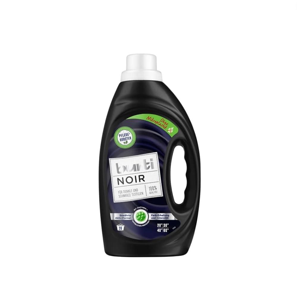 Լվացքի հեղուկ Burti Noir 1.45լ Նախատեսված է 29 լվացքի համար Նախատեսված է սև, ինչպես նաև ջինսե հագուստի համար Շնորհիվ էնզիմների, այն պահպանում է հագուստի գույնը Պարունակում է բնական օճառ Չի պարունակում միկրոպլատիկ և Ֆոսֆատ Նախատեսված է օգտագործել 20-60 աստիճան ջրում