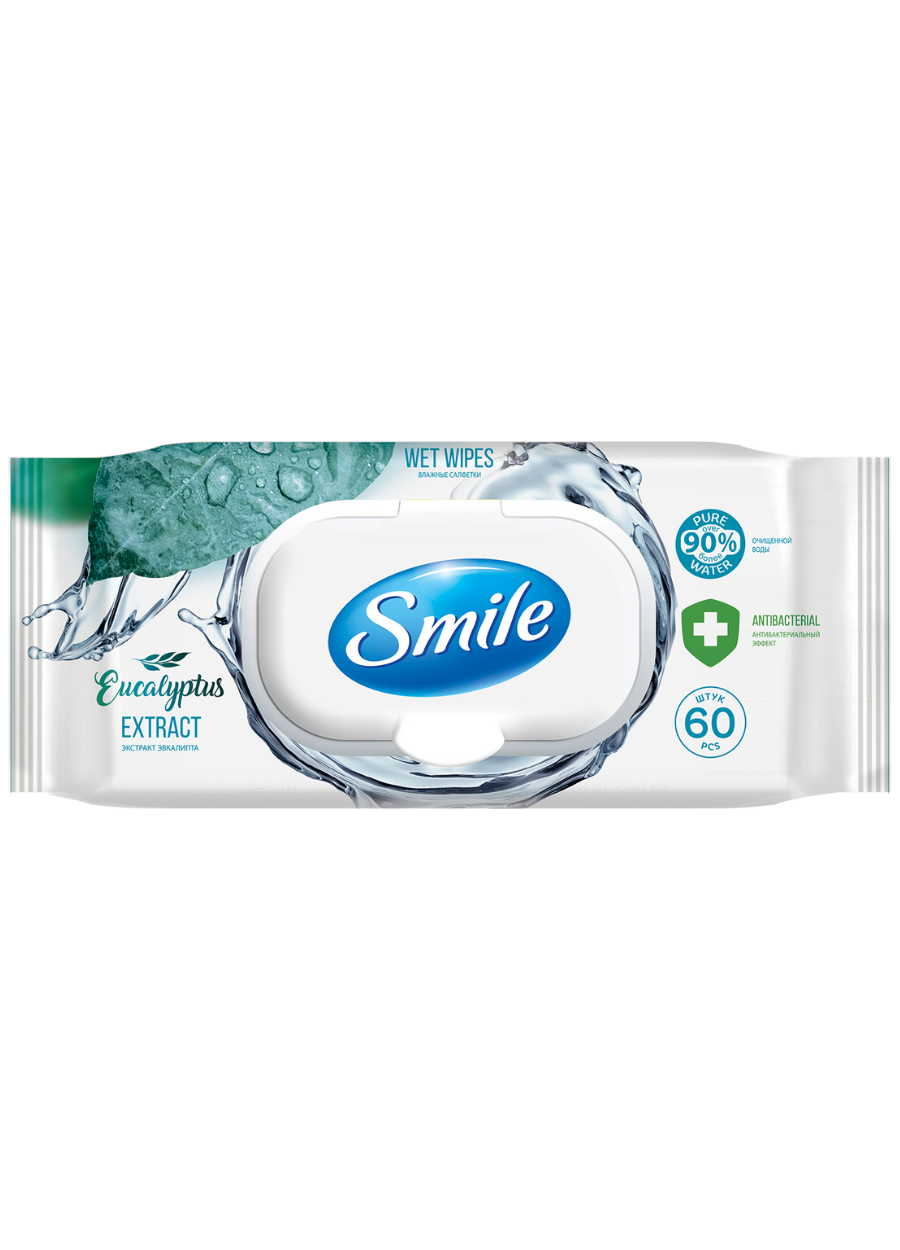 Անտիբակտերիալ Խոնավ անձեռոցիկ Էվկալիպտի էքստրակտով: Ունի անտիսեպտիկ հատկություն։ Նախատեսված է օգտագործել ինչպես ձեռքերի, այնպես էլ մարմնի այլ մասերի համար։